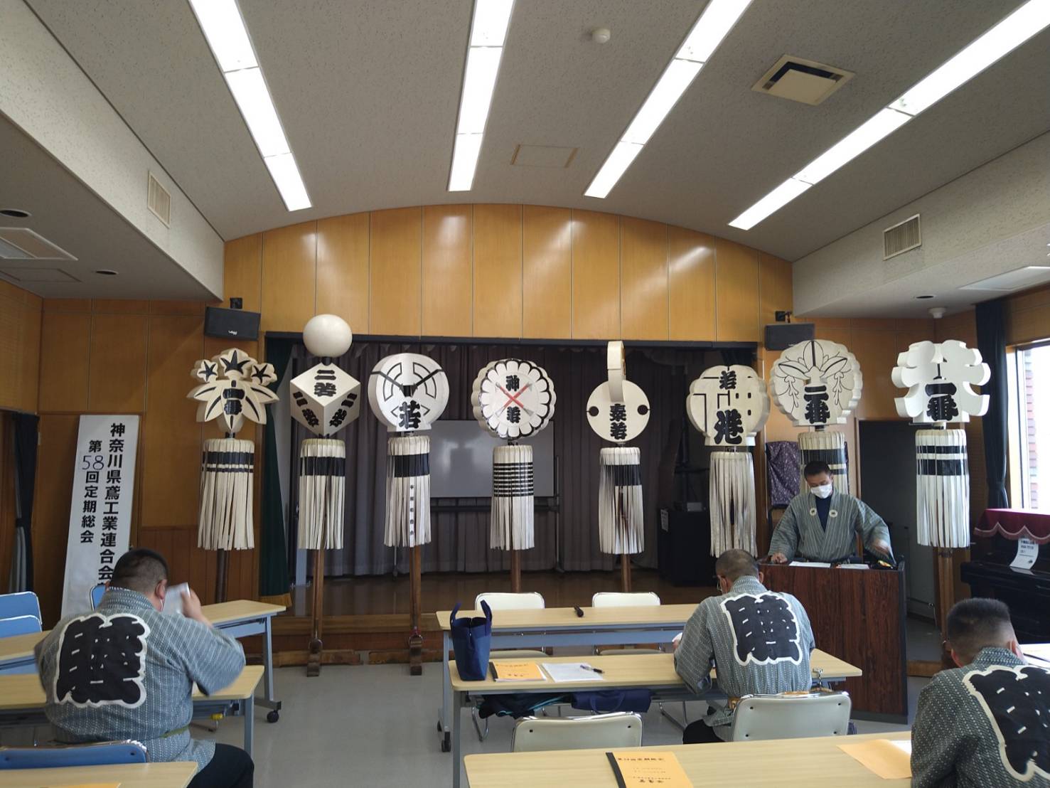 昨日は(一社)神奈川県鳶工業連合会 若鳶会 第58回定期総会が茅ヶ崎市のコミュニティセンター湘南にて執り行なわれ、㈱勝栄土建からは2名参加しました。常任相談役・会員、合わせて40人が参加されました。会場入り口では、アルコール消毒・体温測定・マスク着用を徹底して入場してもらいました。