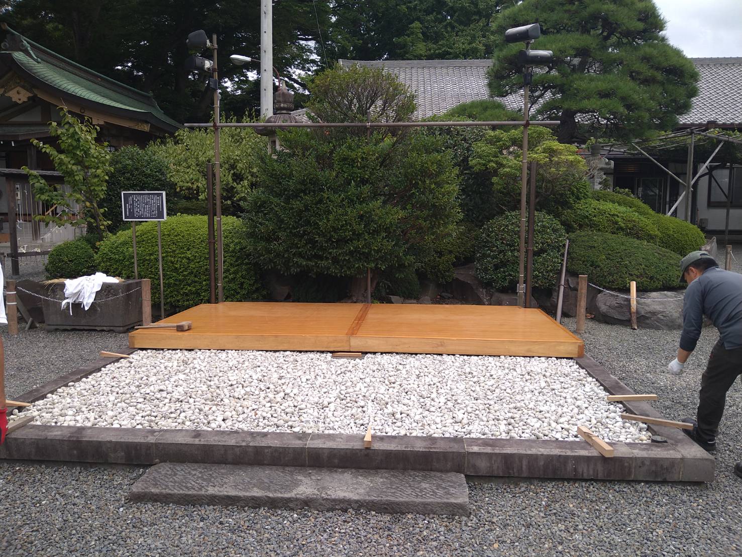 中秋の名月 白旗神社 邦楽の夕べ 2022 9/10 白旗神社 2022年9月10日 URLをコピーしました! 本日は朝から白旗神社 邦楽の夕べに、手伝いに来ました。㈱勝栄土建からは2人参加です。まずは ススキを摘みに近くの河原へ。 白旗神社 神職さんに、キレイに生けて頂きました。 9:00から各団体と舞台・観覧席・幕張り。 篝火も設置。 支度は11:00には完了しました。夕方17:00からの邦楽の夕べの警備に参加。 本日は綺麗な月ですね。 沢山の人が聞きに訪れてました。お手伝いの皆様、大変お疲れ様でした。 白旗神社 ㈱勝栄土建 勝栄土建 基礎 外構 白旗神社 神奈川県 藤沢市 藤沢市外構 邦楽の夕べ 鳶 よかったらシェアしてね! URLをコピーしました! URLをコピーしました! 藤沢市天神町 外構工事 藤沢市(旧 車田町) 外構工事 関連記事 2026年あけましておめでとうございます 2026年1月28日 2025 正月飾り 2025年12月28日 2025白旗神社 正月支度 2025年12月10日 2025白旗神社 例大祭 支度 2025年7月19日 白旗神社 2025年6月 茅の輪神事 2025年7月1日 令和7年4月 神社・神鳶連 出役 2025年5月1日 2025 白旗神社 節分祭 2025年2月4日 2025 白旗神社 左義長神事 2025年1月16日