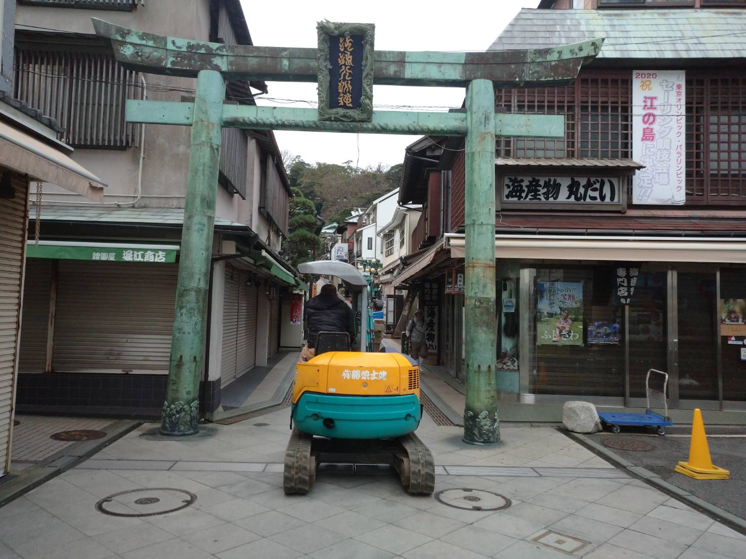 江島神社 プレハブ小屋工事1 2020 1/10 施工現場(作業中) 江島神社 鳶 2020年1月10日 URLをコピーしました! 昨年より江島神社にて、簡易組立ハウスなどを格納するプレハブ小屋を施工してます。江島神社の工事通路は狭く険しい為、軽トラックでの作業になります。まずは重機を自走して搬入します。 施工場所の置場に着きました。 次は軽トラックで資材を搬入していきます。 資材を搬入したら、施工していきます。まずは掘削・採石・鉄筋組立です。 次に基礎ブロックを積んでいきます。基礎の為、基本ブロックに生コンを全詰めして施工しました。 次は埋め戻しをして防湿フイルムを貼り、メッシュ筋を敷いていきます。 土間コンも手練りの生コンで施工しました。基礎が完了したので後はプレハブを組立てて、完了となります。資材の荷揚げ、大変お疲れ様でした。 施工現場(作業中) 江島神社 鳶 勝栄土建 基礎 外構 江島神社 神奈川県 藤沢市 頭 鳶 よかったらシェアしてね! URLをコピーしました! URLをコピーしました! 令和2年 仕事始め 藤沢市消防出初め式 関連記事 湘南台 恵光寺 信徒会館 外構工事 2026年2月24日 2026年あけましておめでとうございます 2026年1月28日 2025 江島神社 正月支度 2025年12月30日 2025 正月飾り 2025年12月28日 藤沢市 外構工事 2025年12月23日 2025白旗神社 正月支度 2025年12月10日 平塚市 外構デッキ工事 2025年12月1日 第50回 藤沢市民祭り 2025年9月30日
