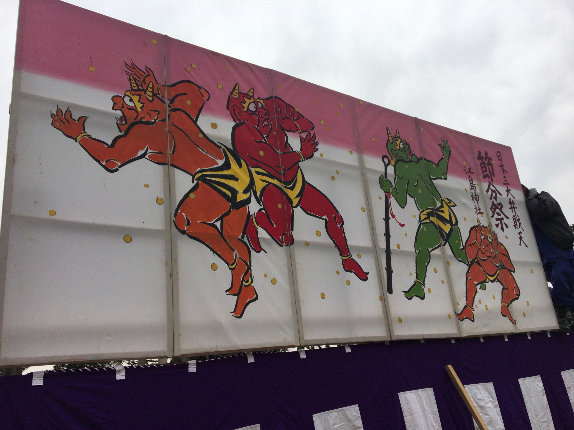 江島神社 プレハブ小屋2・節分祭準備 2020 1/31 地域活動 江島神社 鳶 2020年1月31日 URLをコピーしました! 先週から今週にかけて、江島神社にて作業しました。まずは新しいプレハブ小屋が完成しました。これは正月の巫女さん等の休憩室(簡易組立ハウス)を納める小屋になります。プレハブ職人が手際よく組み立てて完成しました。 次の日に国旗掲揚ポールのロープが腐食して、国旗が降りなくなったと連絡を受けました。12mのポールの為、高所作業車を境内に何とか搬入して、作業しました。接合部も腐食していて大変でしたが何とか完了💦 それから節分祭の舞台を、友希工務店とウチの職人で作成しました。来年の為に、配置・施工などのデータをしっかり記録して施工しました。 節分祭 晴れると良いですね。お疲れ様でした。 地域活動 江島神社 鳶 勝栄土建 基礎 外構 江島神社 神奈川県 節分祭 藤沢市 よかったらシェアしてね! URLをコピーしました! URLをコピーしました! (一社)神奈川県鳶工業連合会 新年会・県連若鳶会 協議委員会 令和2年度 節分祭 関連記事 2026年あけましておめでとうございます 2026年1月28日 2025 江島神社 正月支度 2025年12月30日 2025 正月飾り 2025年12月28日 2025白旗神社 正月支度 2025年12月10日 第50回 藤沢市民祭り 2025年9月30日 藤沢諏訪神社 2025例大祭 2025年8月28日 江の島灯籠 2025 大屋根設置 2025年7月25日 2025白旗神社 例大祭 支度 2025年7月19日