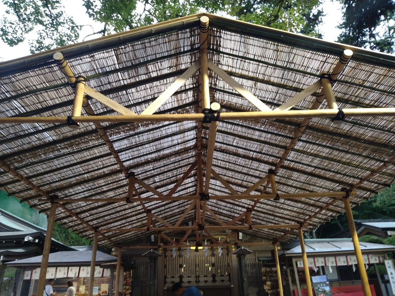 江島神社 切妻屋根設置 2023 7/31 施工現場(完成) 江島神社 鳶 2023年7月31日 URLをコピーしました! 7/11から江島神社 辺津宮にて、切妻屋根を設置させて頂きました。これは2023年度 江の島灯籠の、ライトアップによる設置です。先月より図面・材料を拾い、準備してきました。 まずは材料の買出し・搬入です。軽ダンプで何回かに分けて、荷揚げします。 境内は敷石の為、ステンレスのL型アングルをアンカー止めをして、その金物に柱を固定して、丸太を組立てていきます。参拝者も多い為、ガードマンも付きっきりです。 次に屋根の下地を、真竹・貫等で設置します。 次に屋根材に使うヨシズを設置して、雨よけのビニールを張り、割竹で押し縁を設置して屋根が完成。 足場を撤去して、控え柱・筋交いなど設置して完了です。 完成後に 江の島灯籠 の関係者の方々が、貝殻の風鈴を設置して完了です。 今回の切妻屋根設置には、江戸の鳶頭にご教授頂き 期間内に設置することが出来ました。ありがとうございました。8/31の20:30までライトアップされてますので、夏休みの間に訪れてみてはいかがでしょうか。いつも ご依頼 ありがとうございました🙇 施工現場(完成) 江島神社 鳶 (株)勝栄土建 ㈱勝栄土建 勝栄土建 基礎 外構 江の島 江の島灯籠 江の島灯籠2023 江島神社 灯籠 神奈川県 藤沢市 藤沢市外構 辺津宮 鳶 よかったらシェアしてね! URLをコピーしました! URLをコピーしました! 令和5年度 白旗まつり 藤澤諏訪神社 例大祭準備 関連記事 湘南台 恵光寺 信徒会館 外構工事 2026年2月24日 2026年あけましておめでとうございます 2026年1月28日 2025 江島神社 正月支度 2025年12月30日 2025 正月飾り 2025年12月28日 藤沢市 外構工事 2025年12月23日 2025白旗神社 正月支度 2025年12月10日 平塚市 外構デッキ工事 2025年12月1日 第50回 藤沢市民祭り 2025年9月30日
