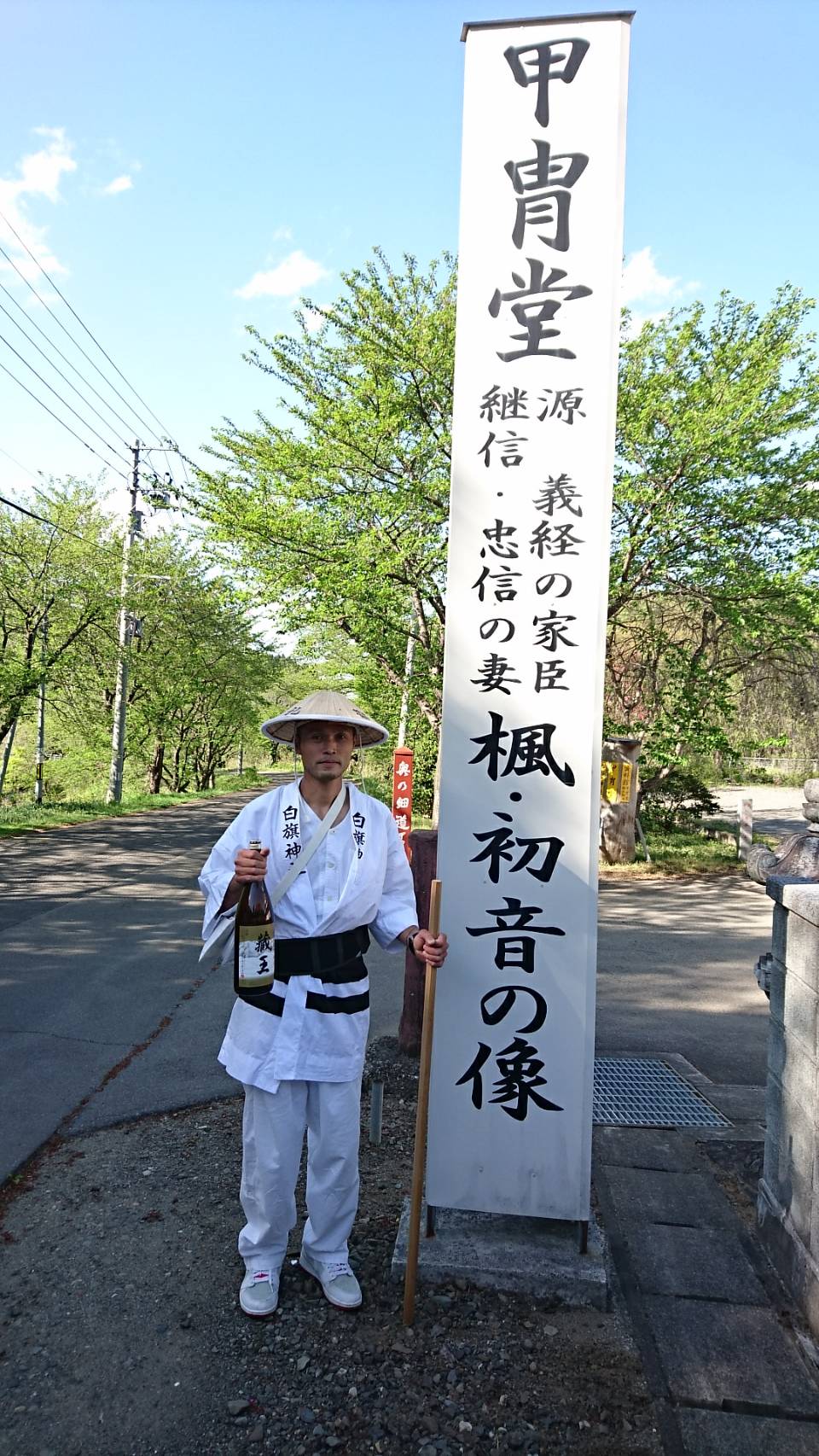 白旗神社 記念事業の源義経公聖地巡礼の旅もだいぶ進んだようです。ゴールデンウィークの5/1~5/3迄、自分も応援&お手伝いしてきました。また明日から二日間 小峯さんの応援に出掛けます。目標は白河の関から宇都宮市(約75km)です。写真はゴールデンウィークのお手伝い時のものです。行ってきます。