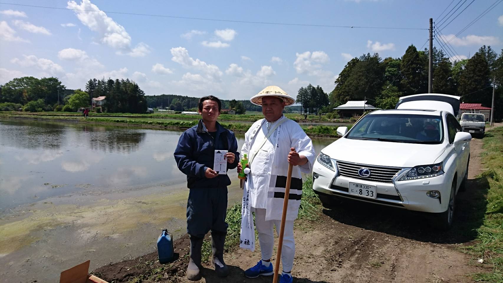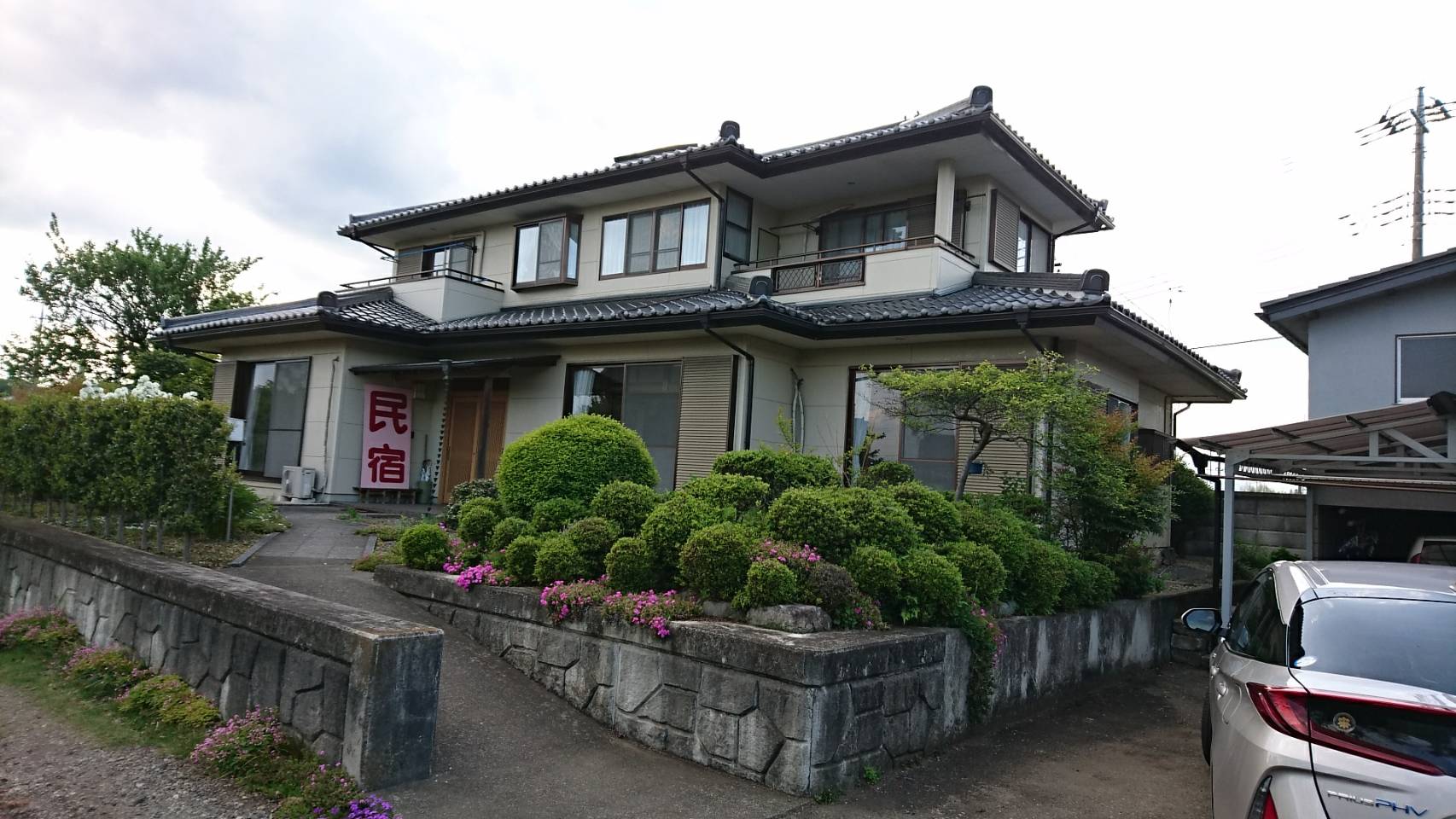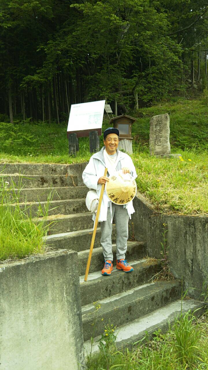小峯さんに交代。交互に歩いて行きます。道中で田植えをやっていたご家族にお茶を頂きました。乃木神社に立ち寄りご参拝して、本日目標の宿へたどり着きました。お疲れ様でした。