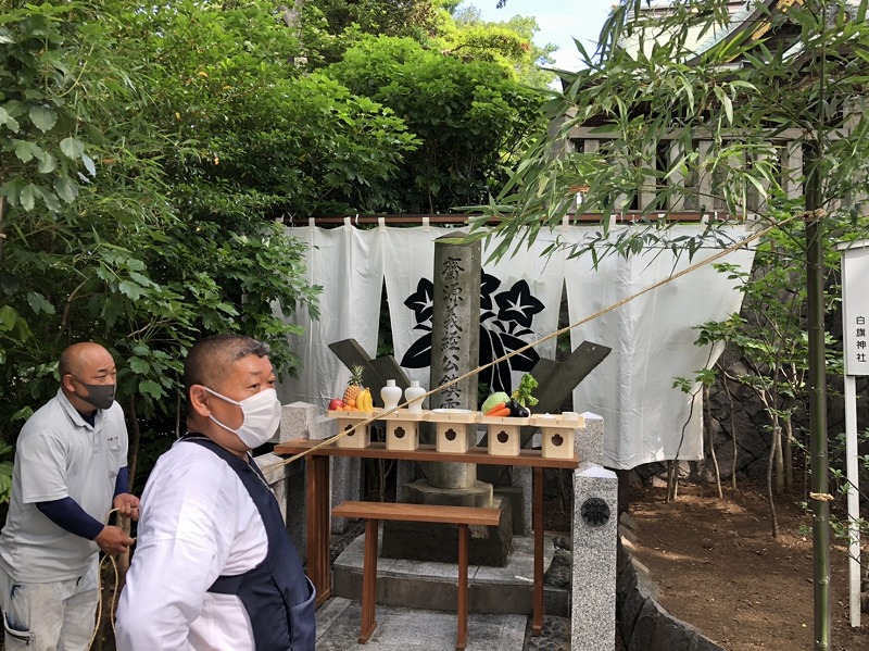 白旗神社 源義経公没後832年鎮霊祭 2021 6/13 地域活動 白旗神社 鳶 2021年6月13日 URLをコピーしました! 本日は源義経公没後832年鎮霊祭の準備・参列してきました。会社から準備4人・参列1人の参加です。まずは昨日の清掃状況です。 本日は真竹を伐採してきて、飾っていきます。 若い社員は神輿を掃除しました。鏡もピカピカになりました。 鎮霊祭は総代・商店会・我々が参加して滞りなく斎行されました。 午後からは場所を移して、白旗まつりの議事などの為、総代会へ出席。本年度の例祭の形がある程度決まりました。あと1ヶ月ちょっとで白旗まつりです。コロナウイルス蔓延に気を付けて準備を進めたいと思います。 地域活動 白旗神社 鳶 ㈱勝栄土建 勝栄土建 基礎 外構 源義経公没後832年鎮霊祭 白旗神社 神奈川県 藤沢市 鳶 よかったらシェアしてね! URLをコピーしました! URLをコピーしました! 藤沢諏訪神社 曳綱 横浜市旭区 RC躯体工事2 関連記事 2026年あけましておめでとうございます 2026年1月28日 2025 江島神社 正月支度 2025年12月30日 2025 正月飾り 2025年12月28日 2025白旗神社 正月支度 2025年12月10日 第50回 藤沢市民祭り 2025年9月30日 藤沢諏訪神社 2025例大祭 2025年8月28日 江の島灯籠 2025 大屋根設置 2025年7月25日 2025白旗神社 例大祭 支度 2025年7月19日