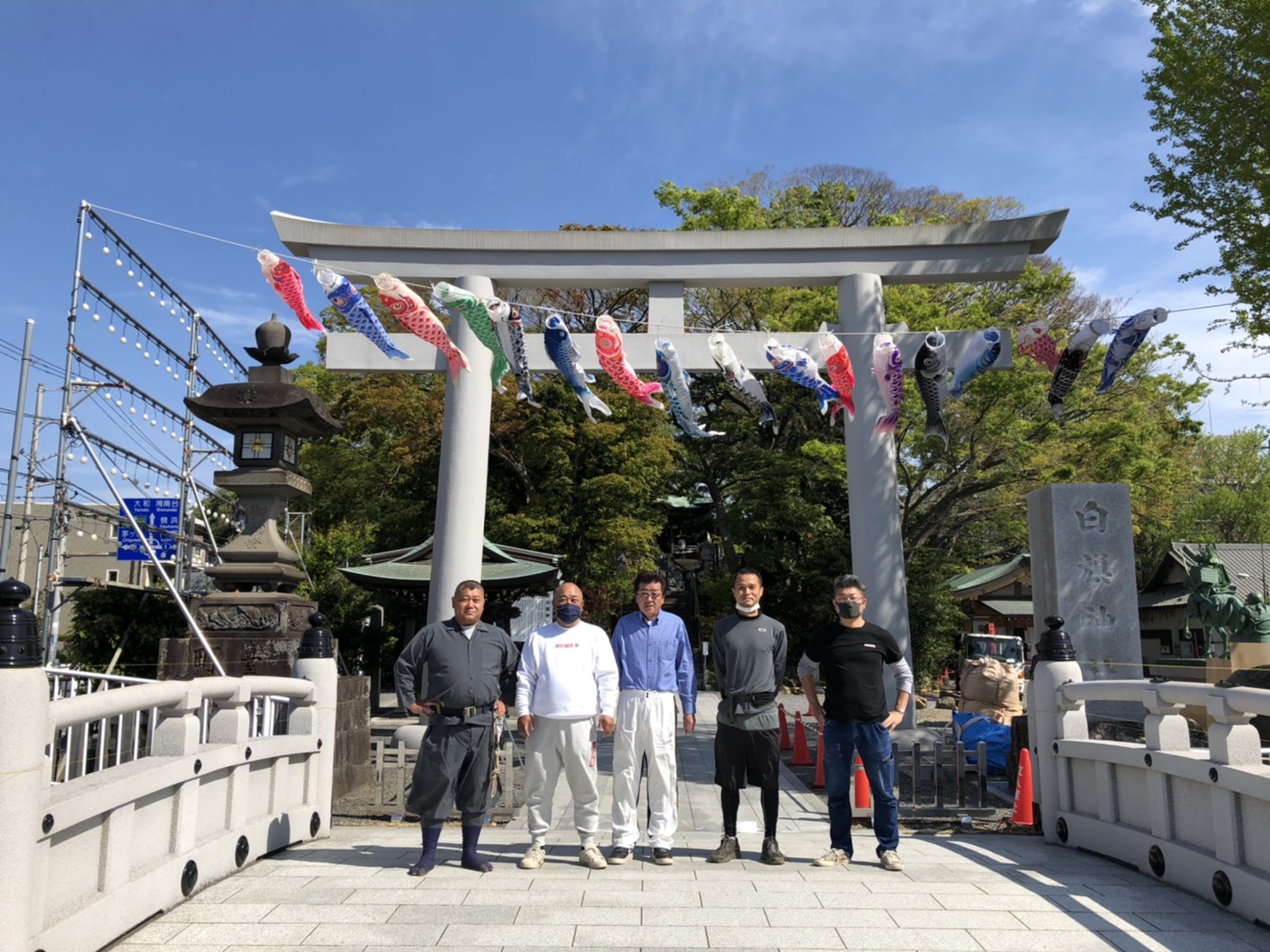 昨日はコロナウィルス感染症の為、中止になってしまった、牛若こども祭りの鯉のぼりを掲揚させて頂きました。本年は残念ながら祭りは中止となりましたが、こども達が負けずに育ってほしいと願い、数を少なくして鯉のぼりを掲揚しました。人を少なくして牛若会の数名で作業しました。