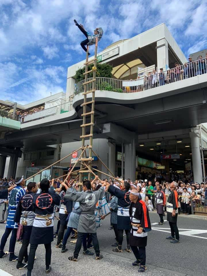 昨日は藤沢市民まつりに参加してきました。勝栄土建からは 鳶職組合3人・神輿1人の参加です。天気の心配がありましたが、ちょうど良い気候で良かったです。まずお祭りの先頭は露払いと言いましょうか、我々 藤沢鳶職組合(藤沢鳶職連合会)が南口パレードの先頭になります。