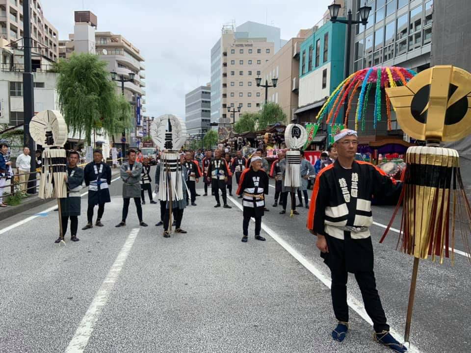 そして北口のパレードへ移動します。こちらは山車も居ます。こちらも先頭は鳶職組合になります。