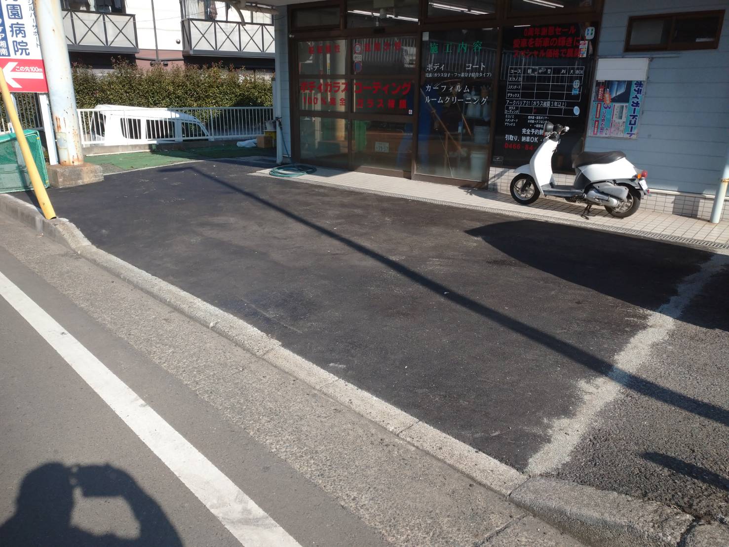 もうひとつの現場は既存駐車場が砕石の為、道路に砕石が飛び出てしまい、近隣よりクレームとなってました。入り口に縁石・アスファルト舗装を施工してクレームに対応しました。
