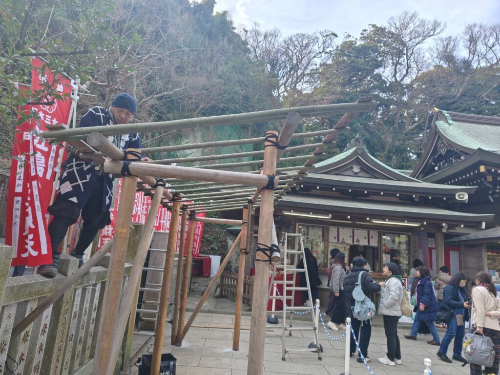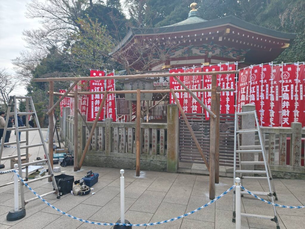江島神社の授与所の屋根を復旧しました。