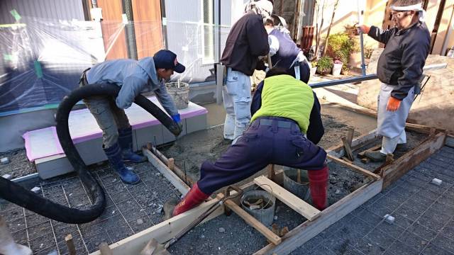 昨日はコンクリート打設作業でした。乱形石を貼り、完成まであと少しです。 -