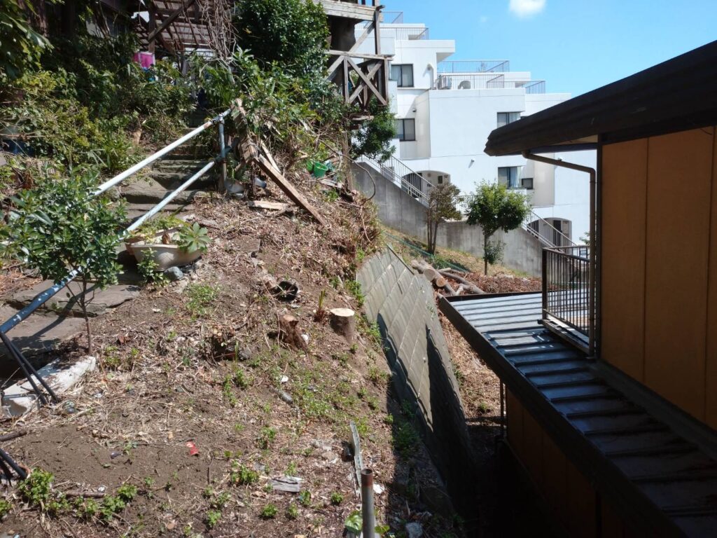 7月の中旬に保土ヶ谷区で樹木の伐採工事を施工しました。保土ヶ谷区は山も多く、この場所は階段なので車両も重機も侵入出来ません。その為、特別な木こり職人を呼び施工... -