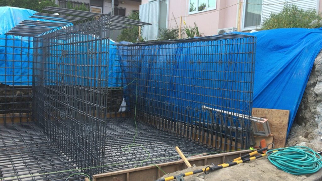 逗子市の造成現場も進んで来ました。根伐りが完了して、砕石転圧・捨てコン打設を施工しました。 本日より鉄筋を組み立て、明日に基礎コンクリートを打設します。 -