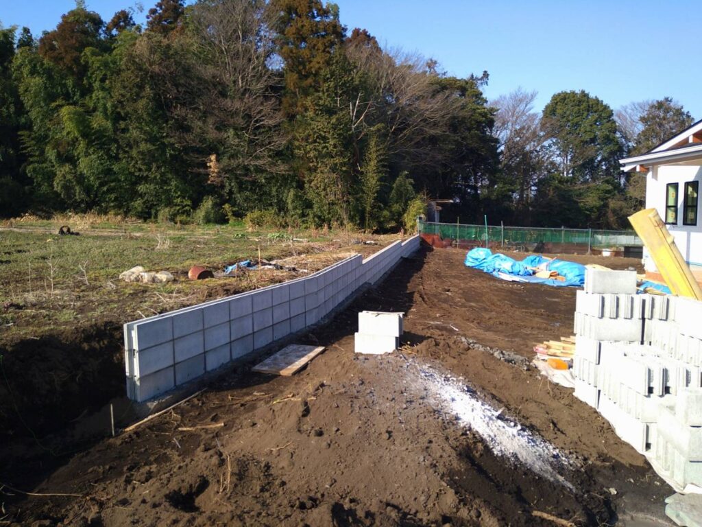 藤沢市円行の外構工事が完成しました。打合せ図面の通り作業していきます。まずは外周のブロック工事から施工します。 次に車庫部分の鋤取り・カーポート設置・砕石・メ... -