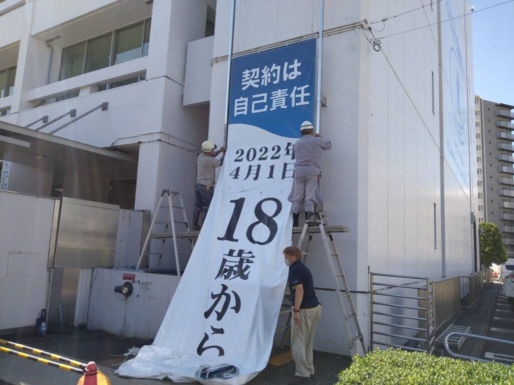 先週、近所の洋品店様より厚木市に、のぼり旗の設置を依頼されました。設置場所が階段の為、足場板を設置して作業しました。 1段ずつ紐で固定しながら、揚げて行きます... -