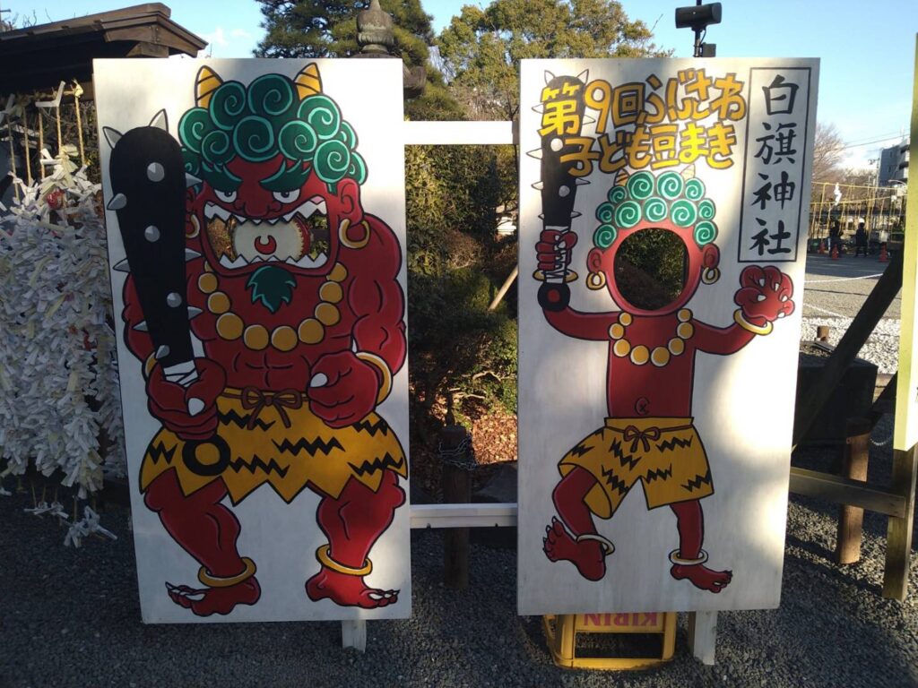 白旗神社にて節分祭の支度をしました。まずは1/31まで開催されていた、藤沢七福神めぐりの顔出しパネルを撤去して、子ども豆まきのパネルに変更します。 宮司から奉納の...