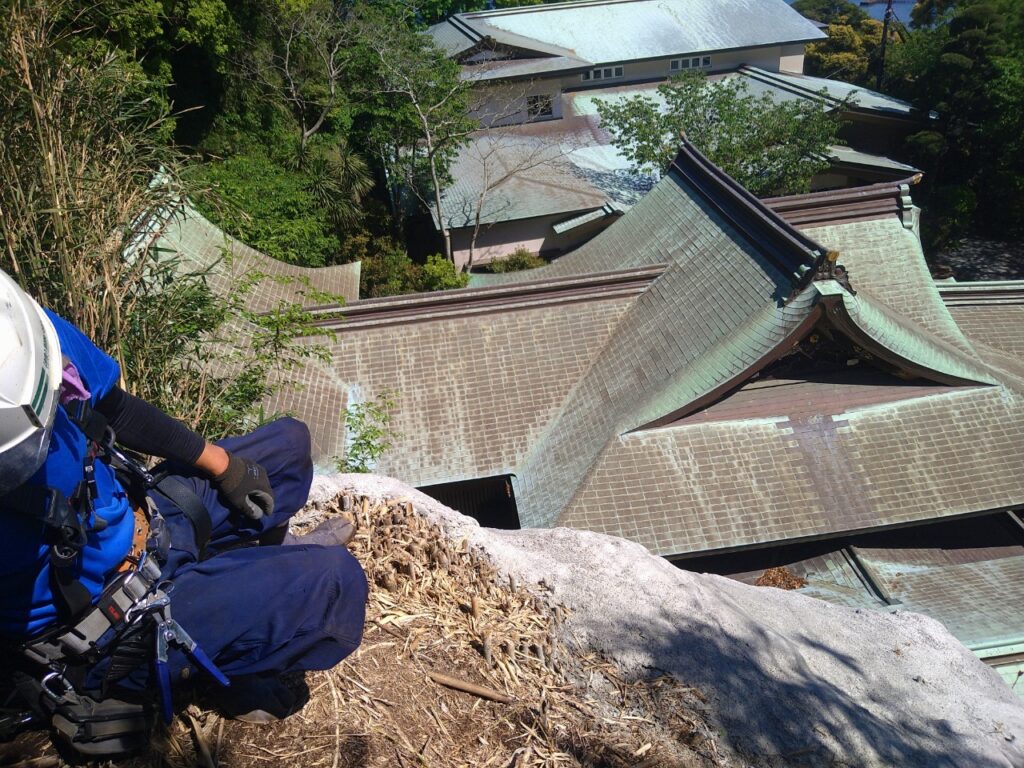 先月、江島神社の斜面保護工事が完了しました。既存の斜面から、ポロポロと土が落ちてくるので、モルタル吹付けにて施工しました。まずは専門職を呼び、斜面の伐採・ア...