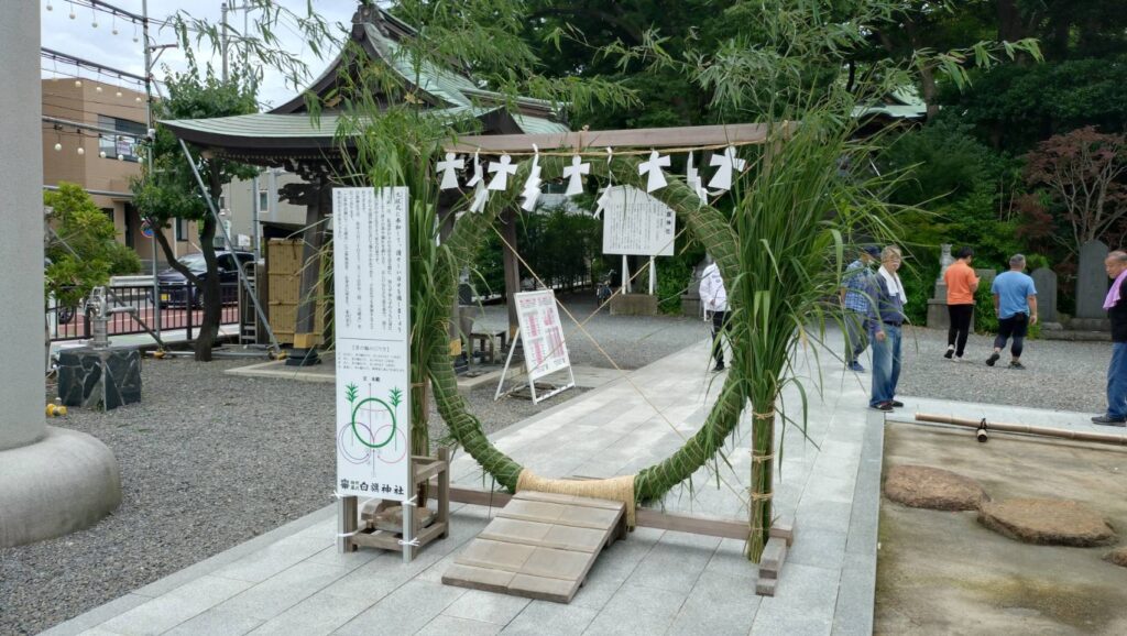 6/30は白旗神社にて夏越の大祓いの準備・参列しました。まずは朝8:00に各団体・総代と河川敷へ茅を刈りに行きました。 神社へ帰り、茅を選別して茅の輪を作ります。 作...