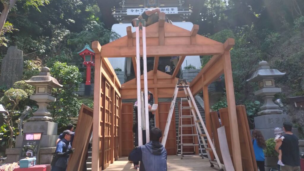 白旗神社の例大祭の片付けが終わり、7/23より江の島灯籠 2025の大屋根設置工事が始まりました。コロナ明けの2023年から今年で3年目の設置です。日程と完成イメージ図を... -